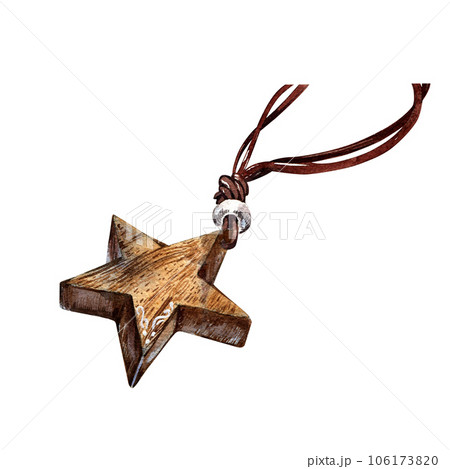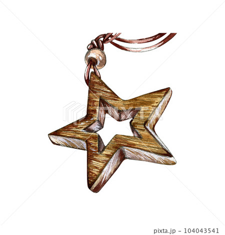 Realistic wooden texture star decoration isolated on white background. Watercolor hand draw illustration. Art for design