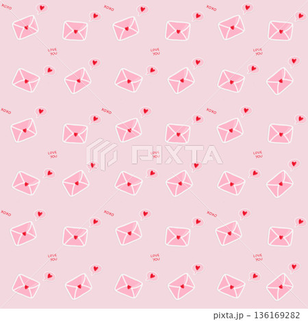 valentine seamless pattern background, cute hand drawing cartoon of love letter with heart shape in bubble and emotion love you, xoxo isolated on pink background, flat minimal style