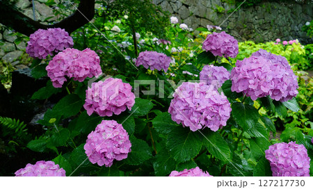 矢田寺(奈良県大和郡山市)本堂に続く参道に咲くアジサイの花