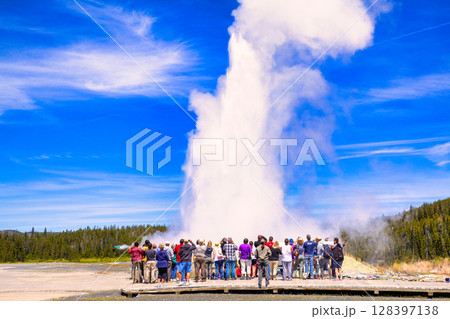 イエローストーン国立公園のオールドフェイスフル間欠泉の絶景