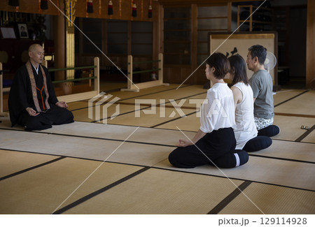 坐禅をする旅行者 愛知県 知多 岩屋寺