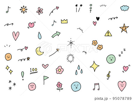 手書き 素材 セット カラフル 色付き イラスト 素材